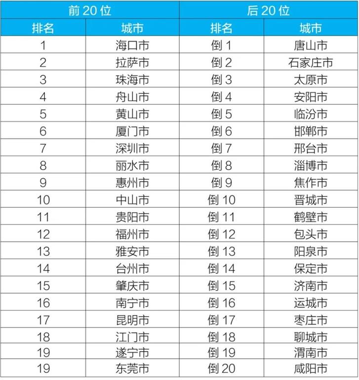 2020年10月168個重點城市排名前20位和后20位城市名單
